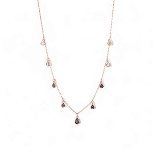 Rose gold-plated rose gold and black artificial beads, secured with a lobster closure