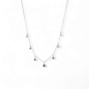 The Silver Purple zircons stone Fantasy Necklace has an elegant design of beautiful purple coloured stones lining up the entire length of the silver necklace.