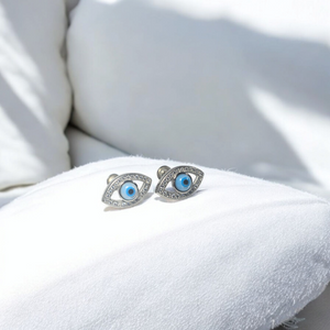 These pure Silver earrings feature an eye motif or nazar pattern set