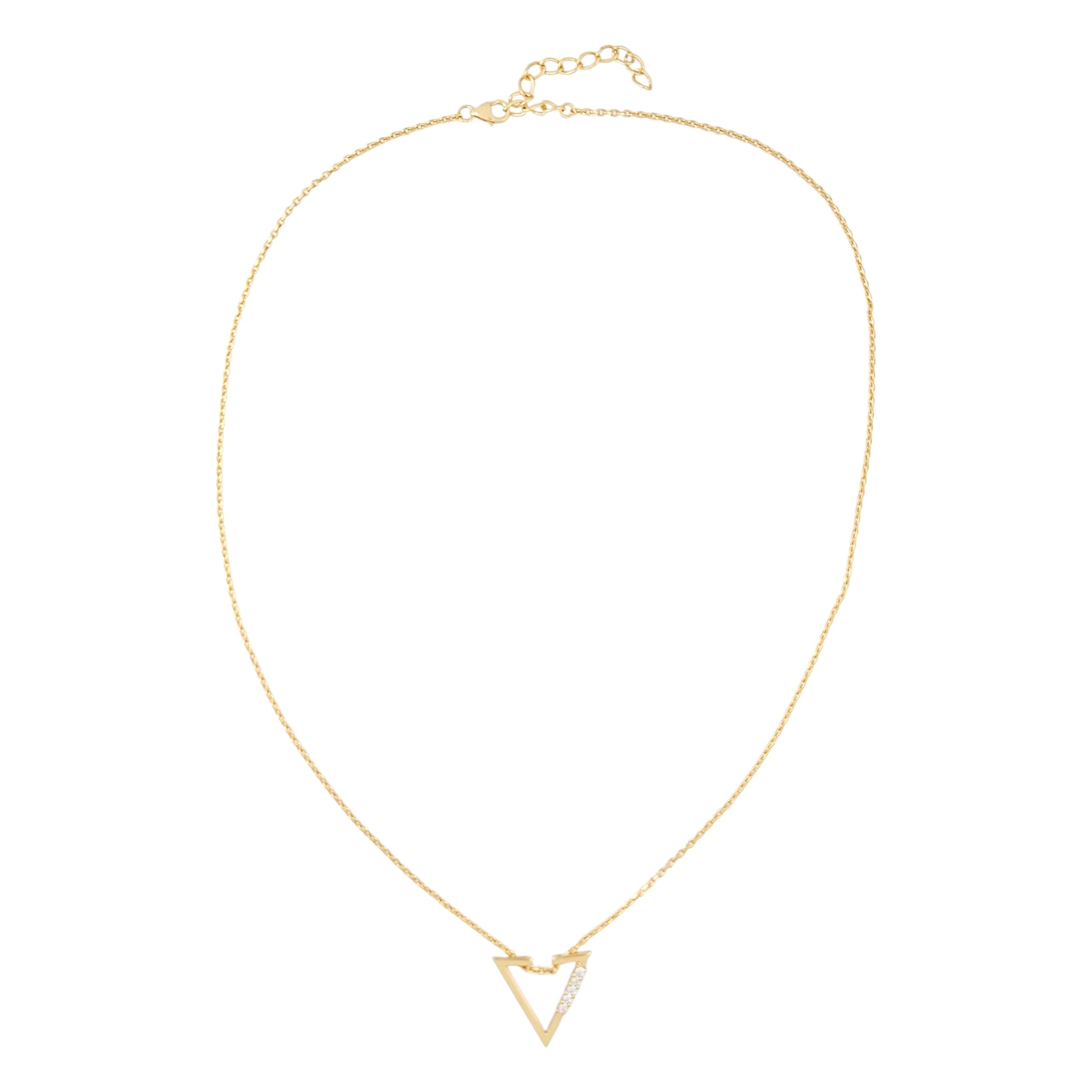 Make a bold statement with ISHA'S Triangle Chevron Necklace in 925 Sterling Silver with Yellow Gold accents. Meticulously crafted, this necklace features a modern and geometric design, adding a touch of contemporary flair to your ensemble. Elevate your style with this exquisite piece, a perfect blend of sophistication and on-trend fashion.